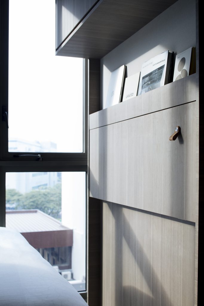 By reconfiguring the entrance of the balcony, a settee area along with shoe storage were designed at the entrance of the home for functional purposes.