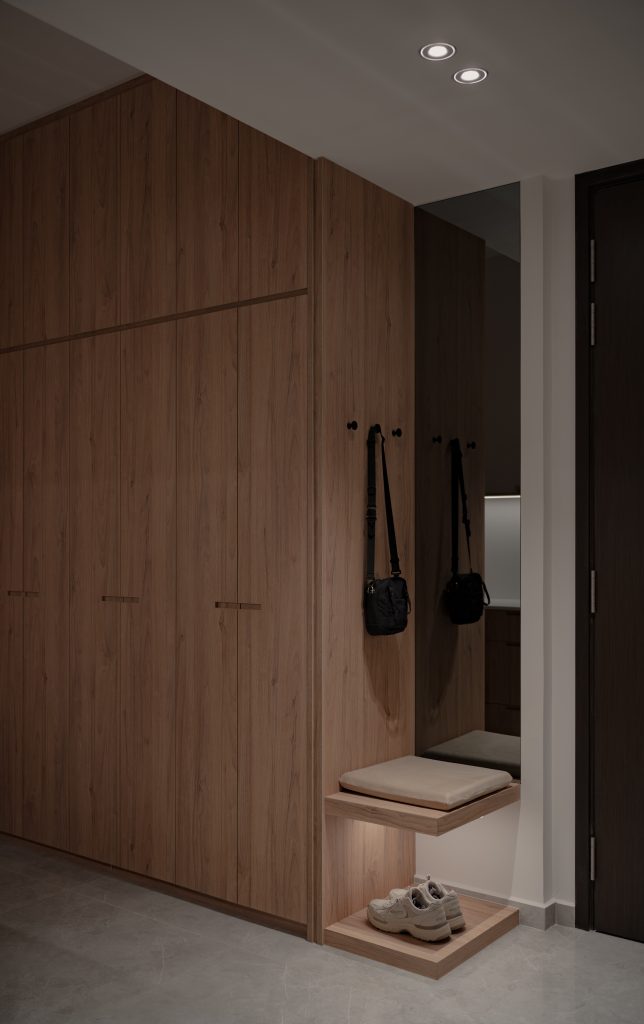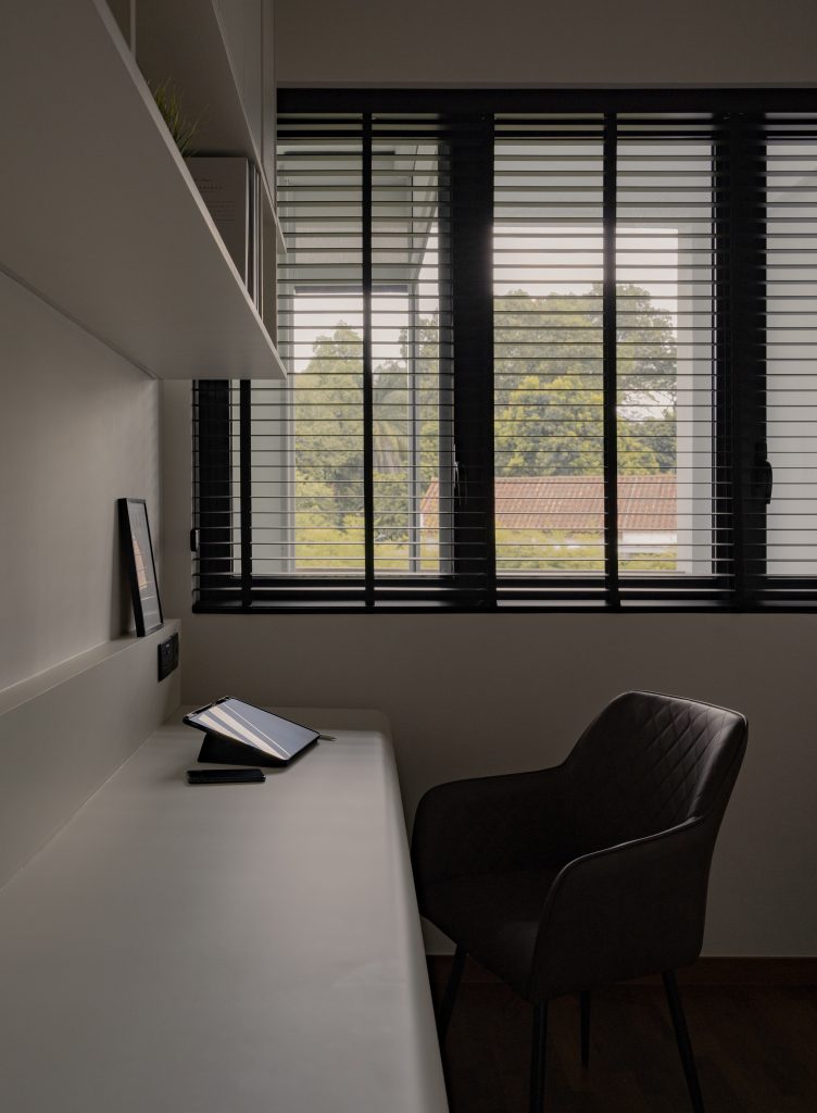 The brief of this project was rather simple : to consider a breakfast counter for quick meals and to convert the extra bedroom into a walk-in-wardrobe / study space. We’ve retained most of the fittings provided by the developer, including the flooring, and mainly built more storage space as that was one of the main needs from the homeowners. We’ve also changed the colour scheme of the original kitchen cabinets by wrapping interior film to match our newly built carpentry so as to provide a visual consistency.