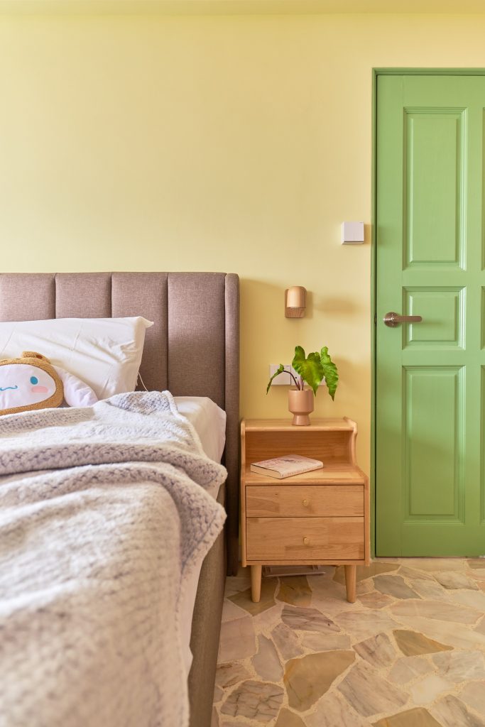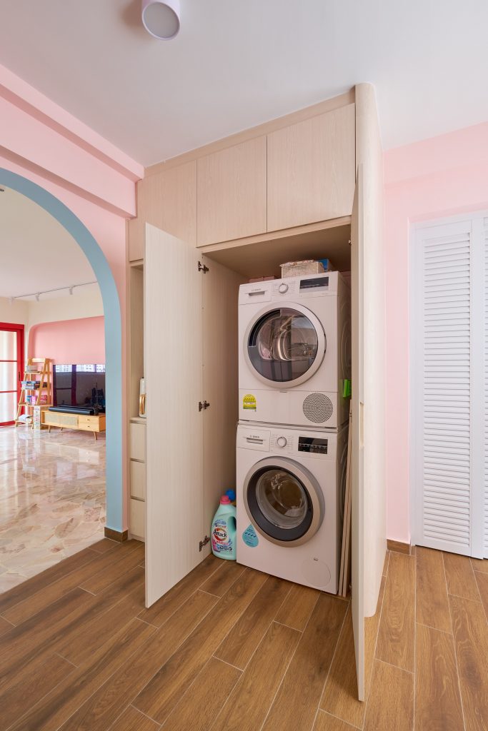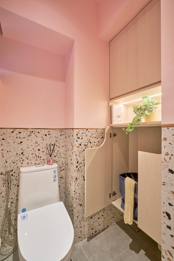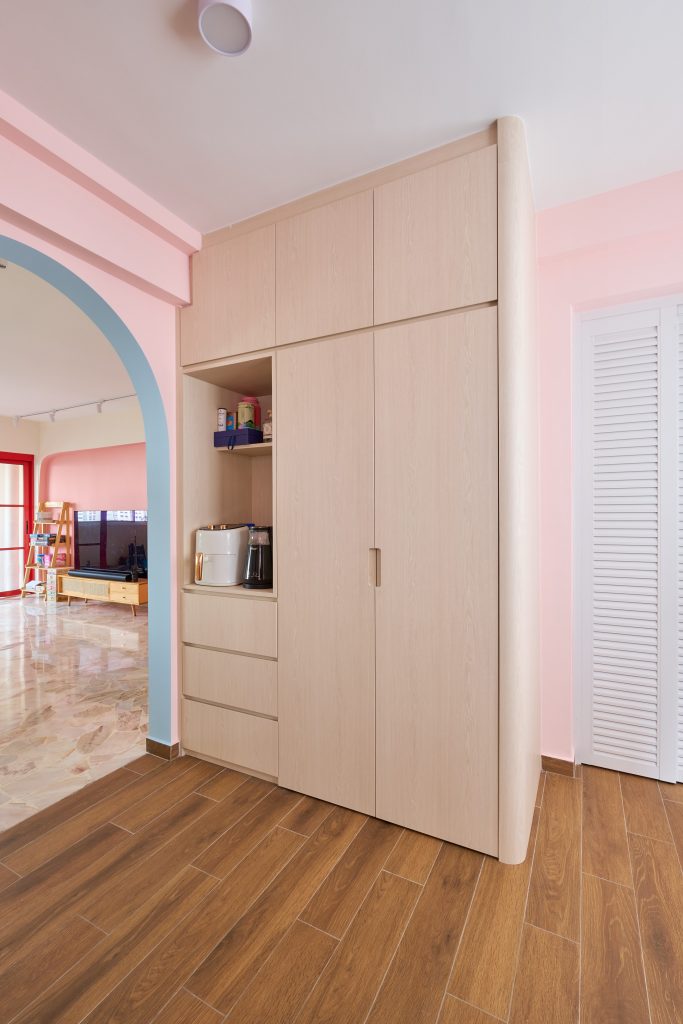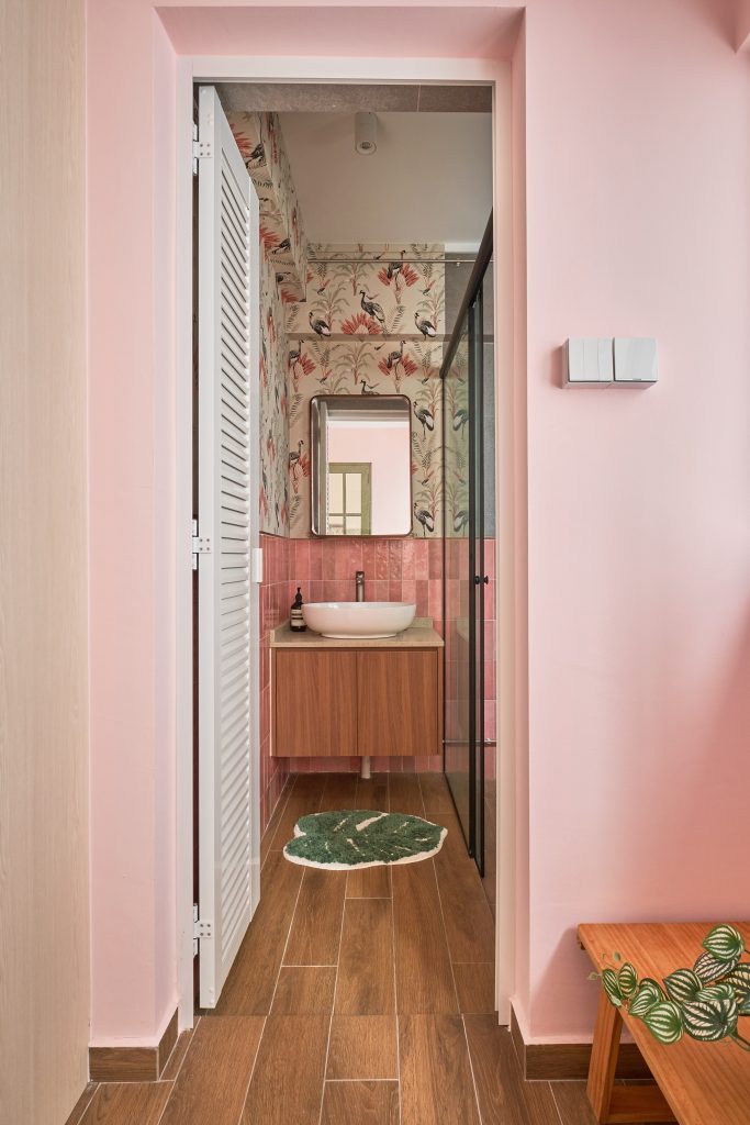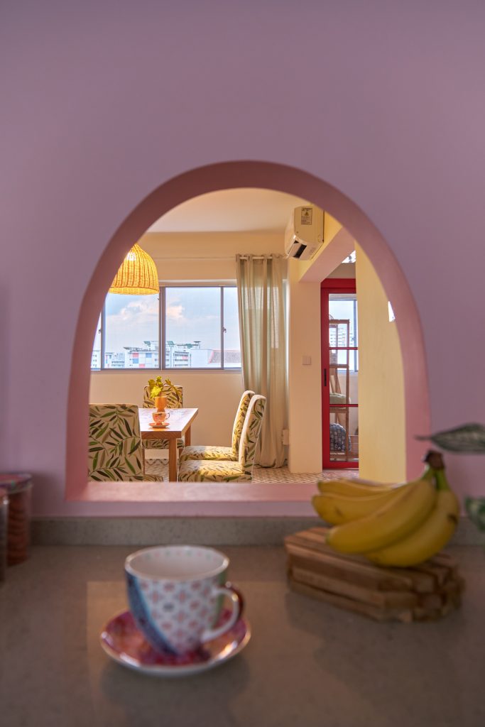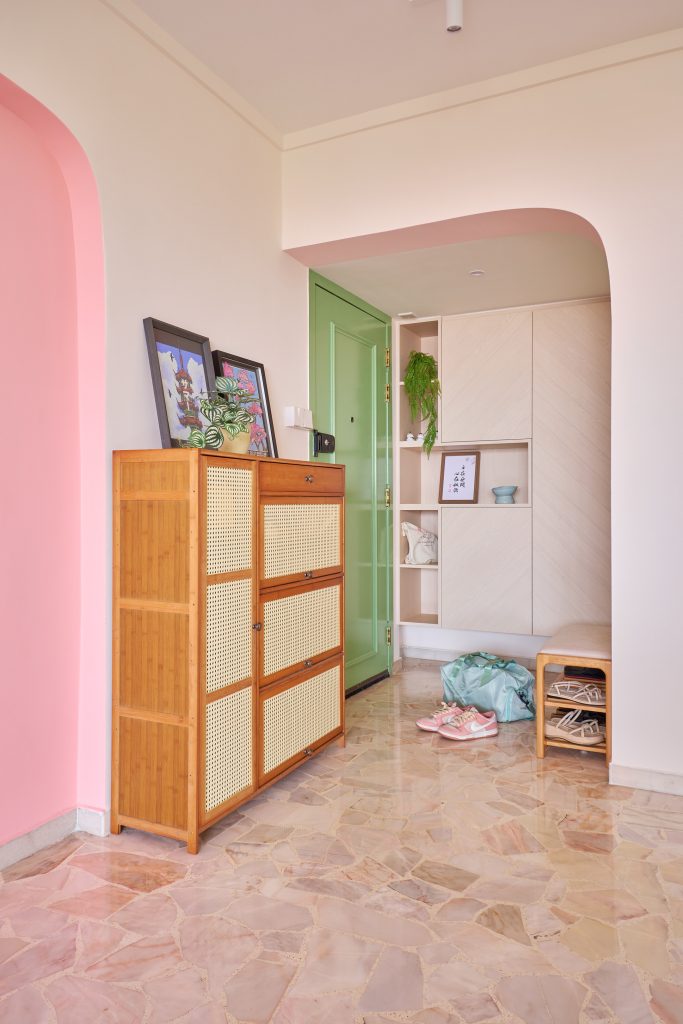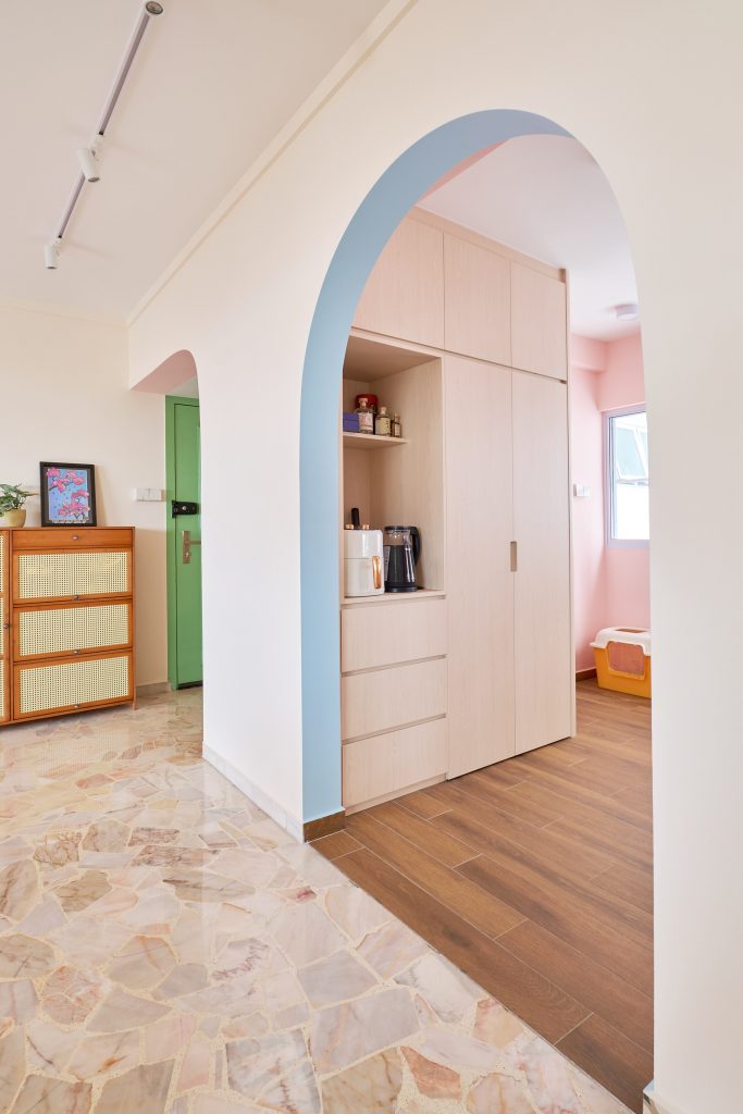 This vibrant HDB resale flat is a bold celebration of personality and playfulness. Inspired by retro charm and a love for eclectic design, the home is brought to life with an adventurous palette of pastel hues, curved archways, and statement feature walls. Each space—from the pink-tiled bathroom to the charming green-and-yellow bedrooms—is carefully curated to balance fun, functionality, and warmth. Designed for a young couple with a creative spirit, this renovation transforms a typical resale unit into a cheerful, one-of-a-kind sanctuary full of character and joy.